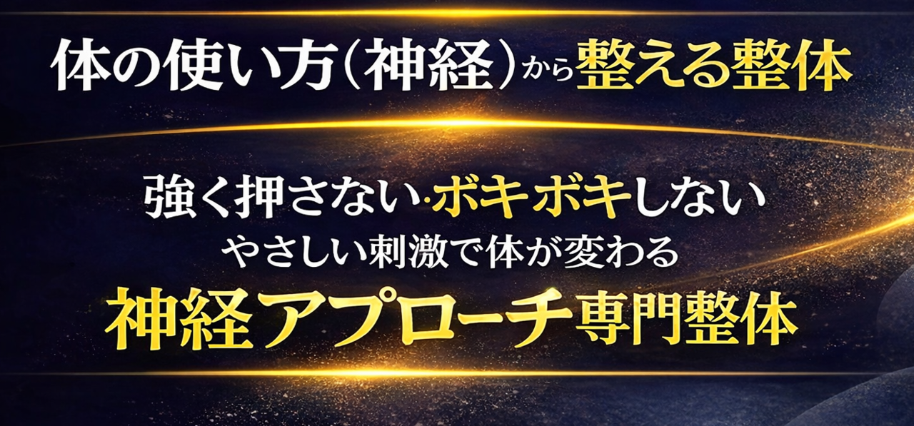 神経アプローチ整体とは、体の使い方や神経の働きを整えることで、慢性的な痛みや不調の改善を目指す施術です。