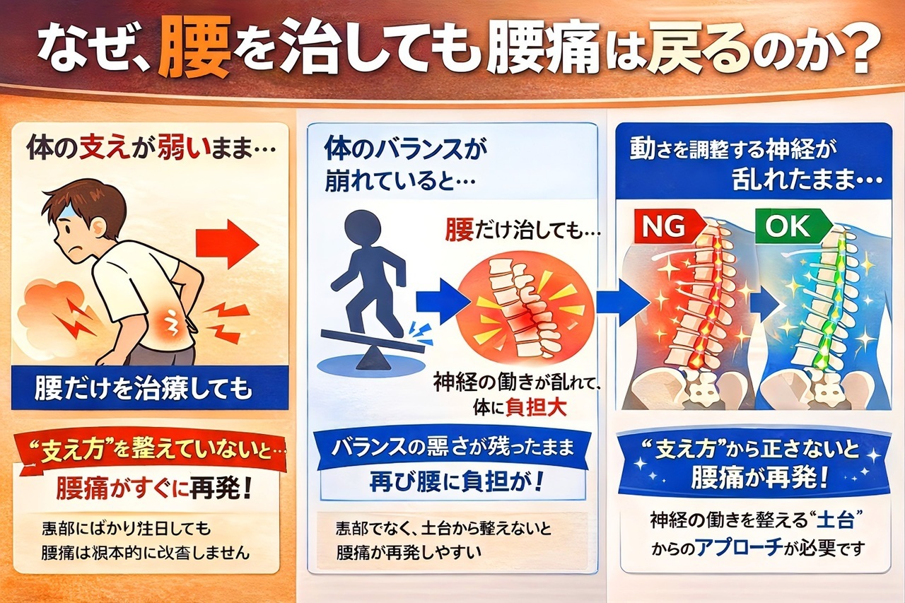 この“支え方”が変わらない限り、痛みは戻りやすくなります。