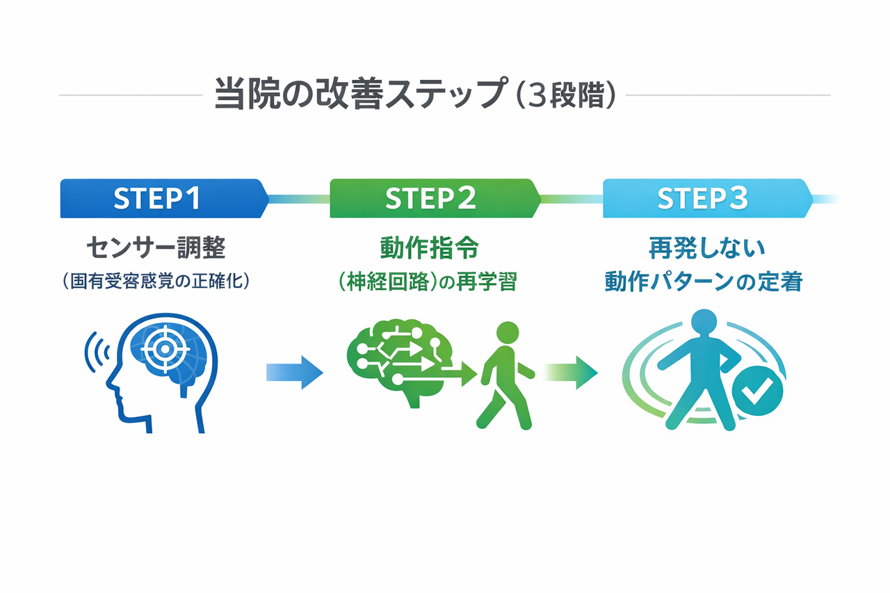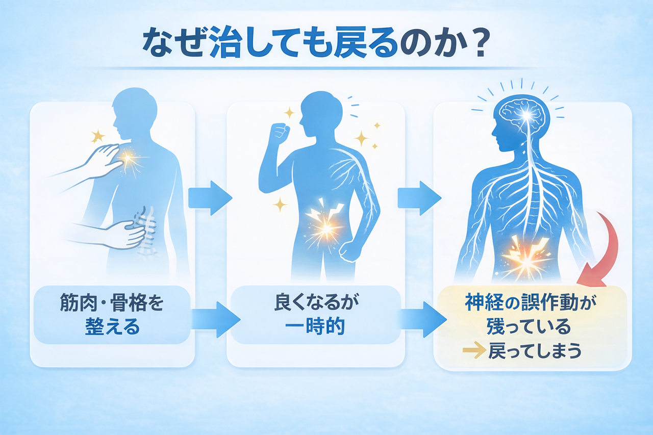 「身体のセンサーのズレ」「神経の過敏化」「動作のクセ」