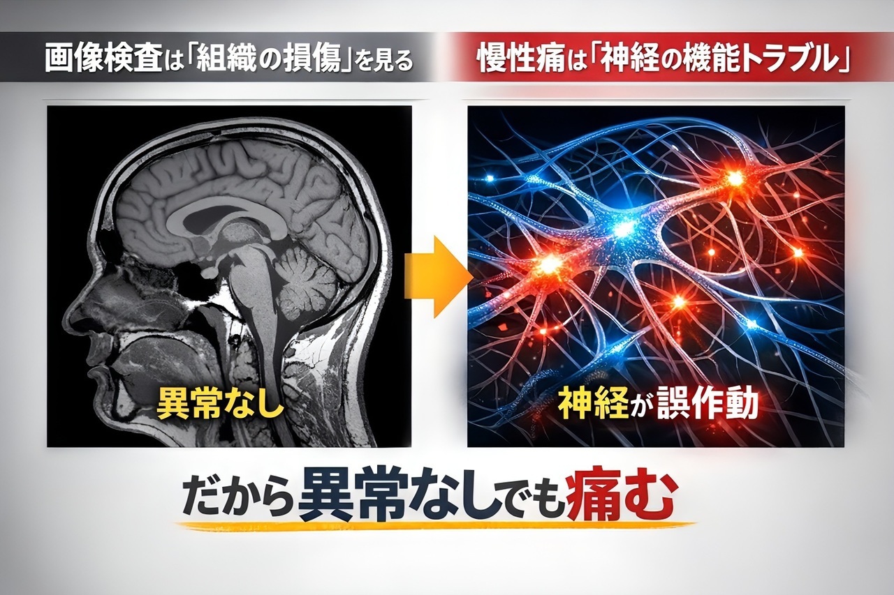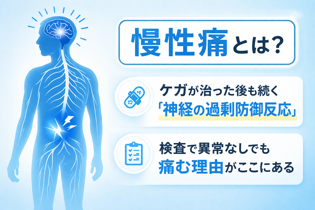 体の組織は治っているのに、痛みだけが残ってしまう状態。