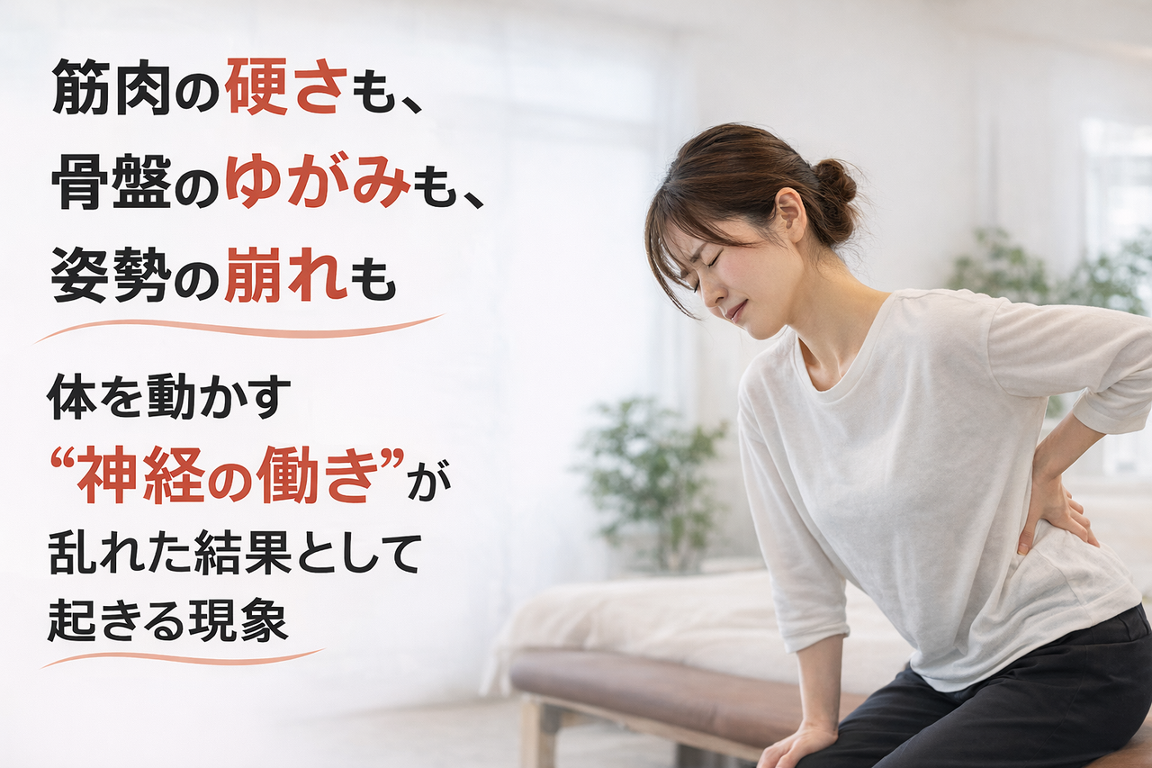 筋肉でも骨格でもなく、神経の働きの問題が関わっています。