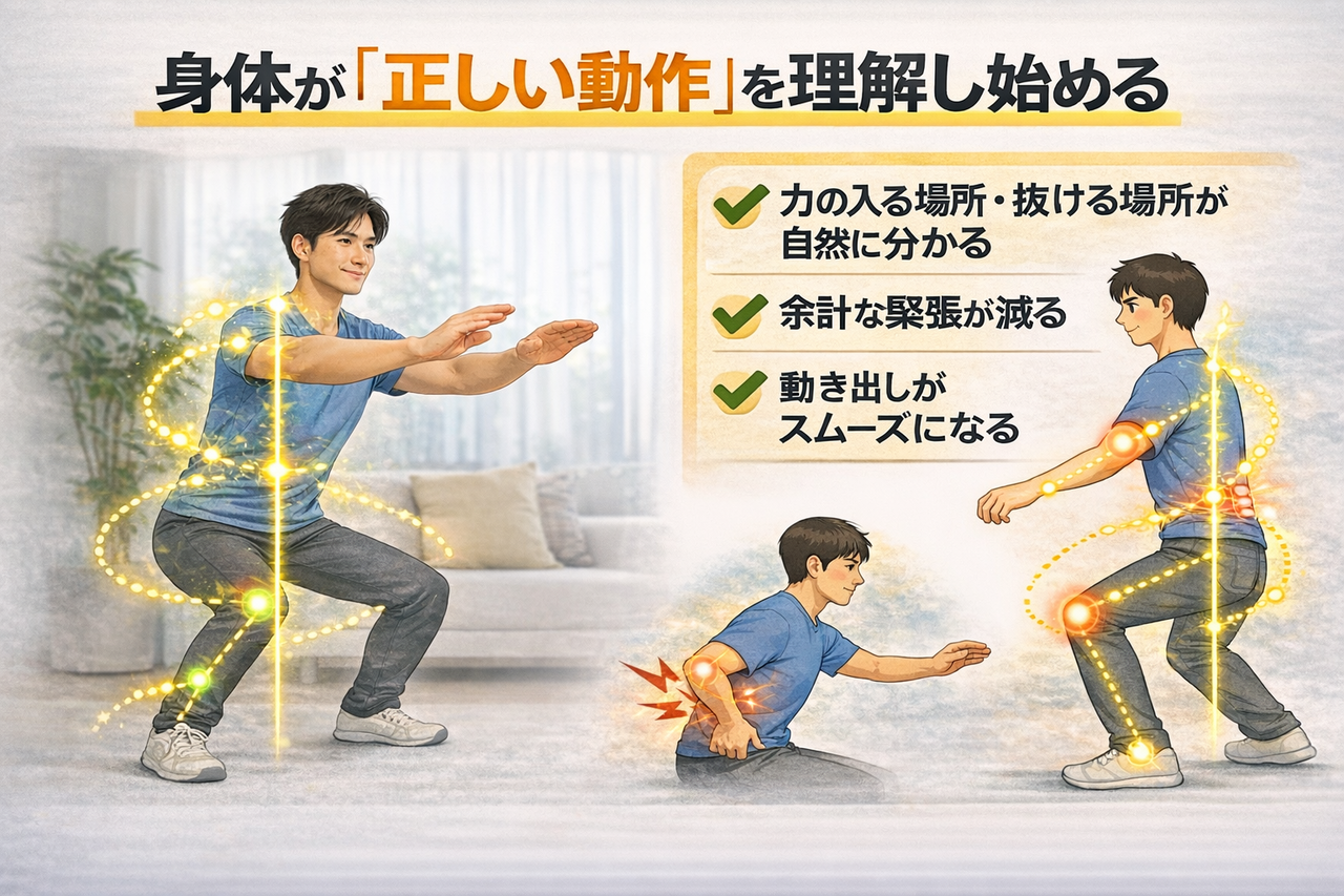 外側を整えても いつもの間違った動作パターンに戻る のは自然なことです。