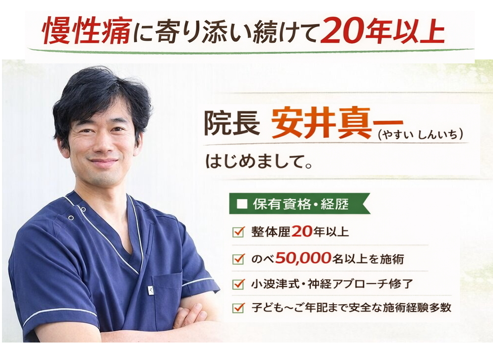 当院では、小波津式の本部研修・技術講習を継続して受け、常に最新のアプローチを学び続ける施術者が担当します。